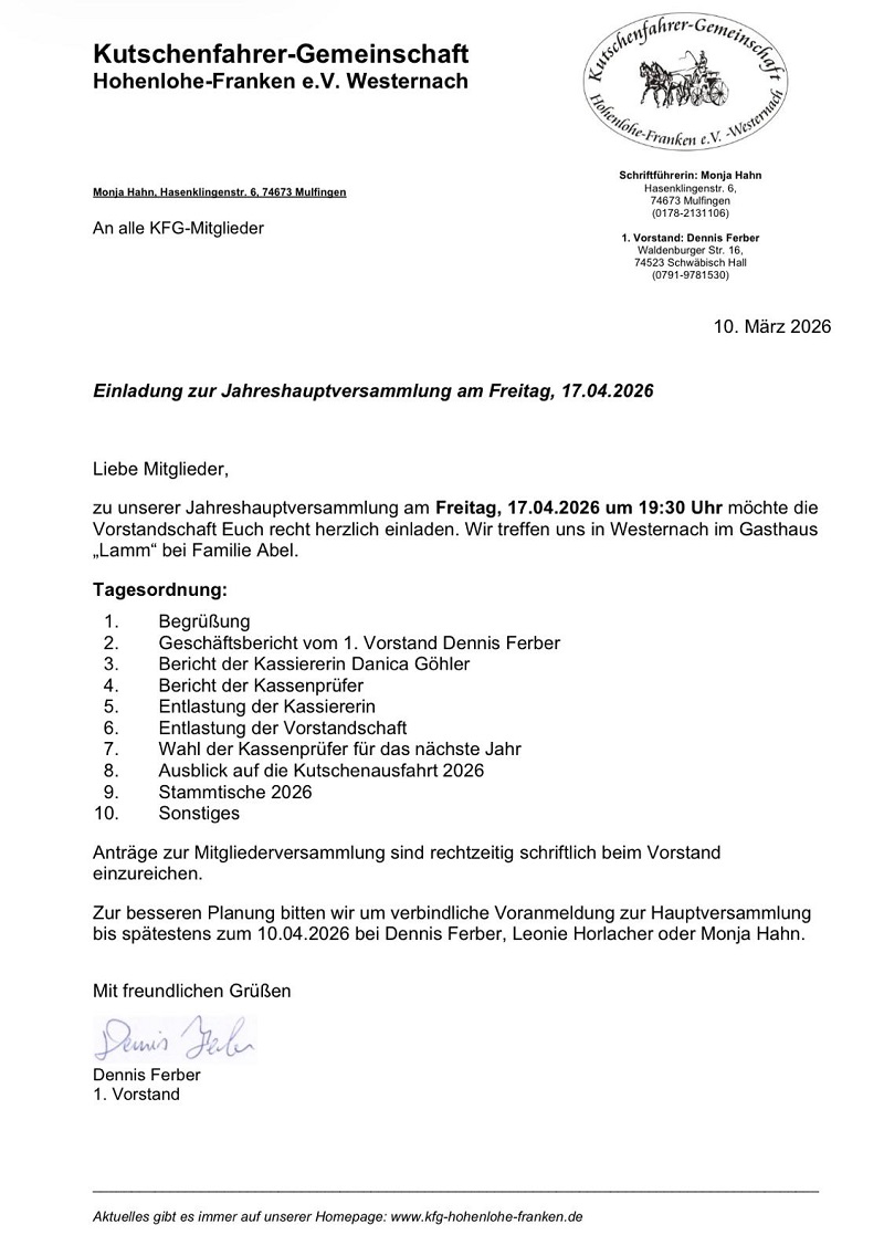 Nächster Fahrerstammtisch ist die Jahreshauptversammlung,