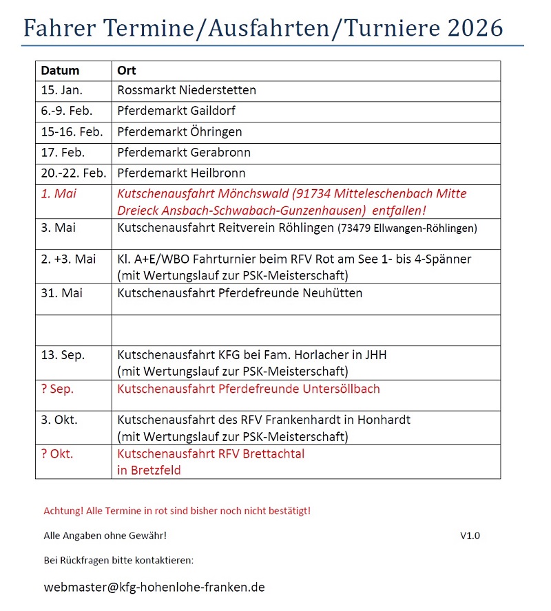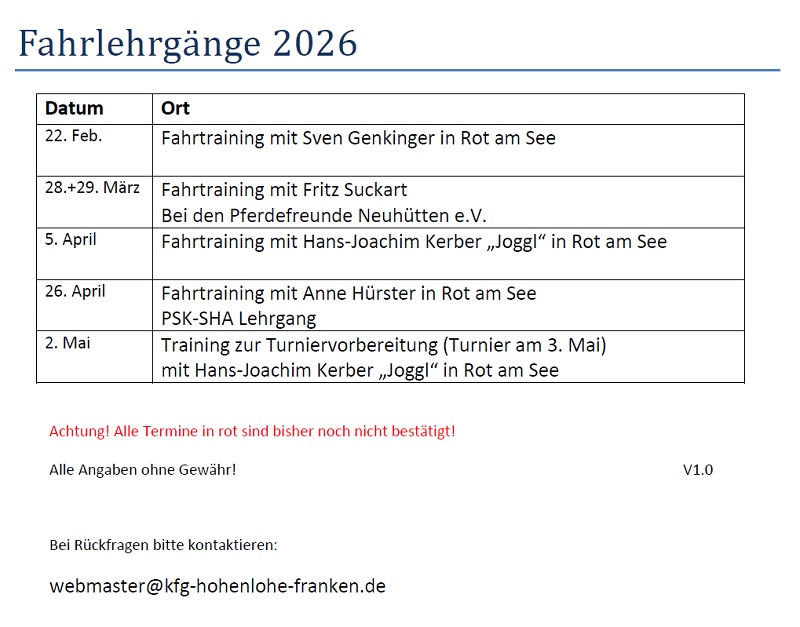 FAHRER-TERMINE 2026:
